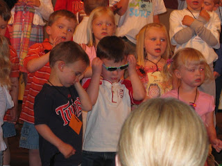 I have some not very good pictures, but pictures nonetheless of the kids’ VBS program today.Here is Silje in the…